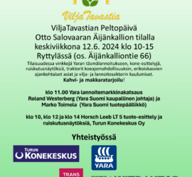 Tänään 5.8. on ViljaTavastian hankintapäällikkönä aloittanut Eeva Pajulahti. Juha Salovaara jäi pois ViljaTavastiasta elokuun alusta ja Eevan tavoitat Juhan vanhasta numerosta 045 1313085 tai sähköpostilla eeva.pajulahti@viljatavastia.fi . Eeva on raudanluja ammattilainen vilja- ja lannoitekaupassa ja siirtyy meille maatalouskaupasta.